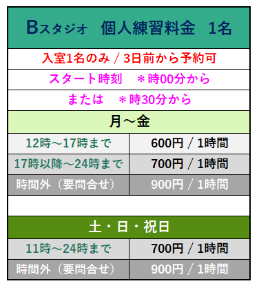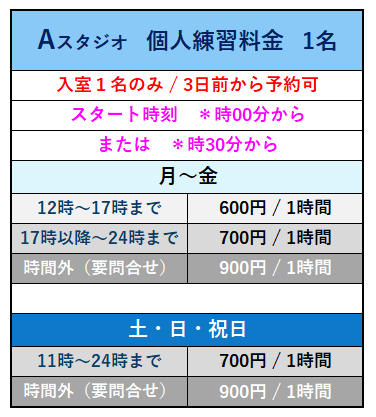 個人練習2名料金